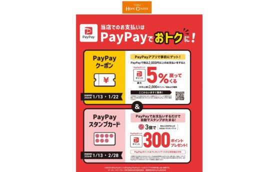 1/13(火)より「PayPayクーポン」・「PayPayスタンプ」開催! …