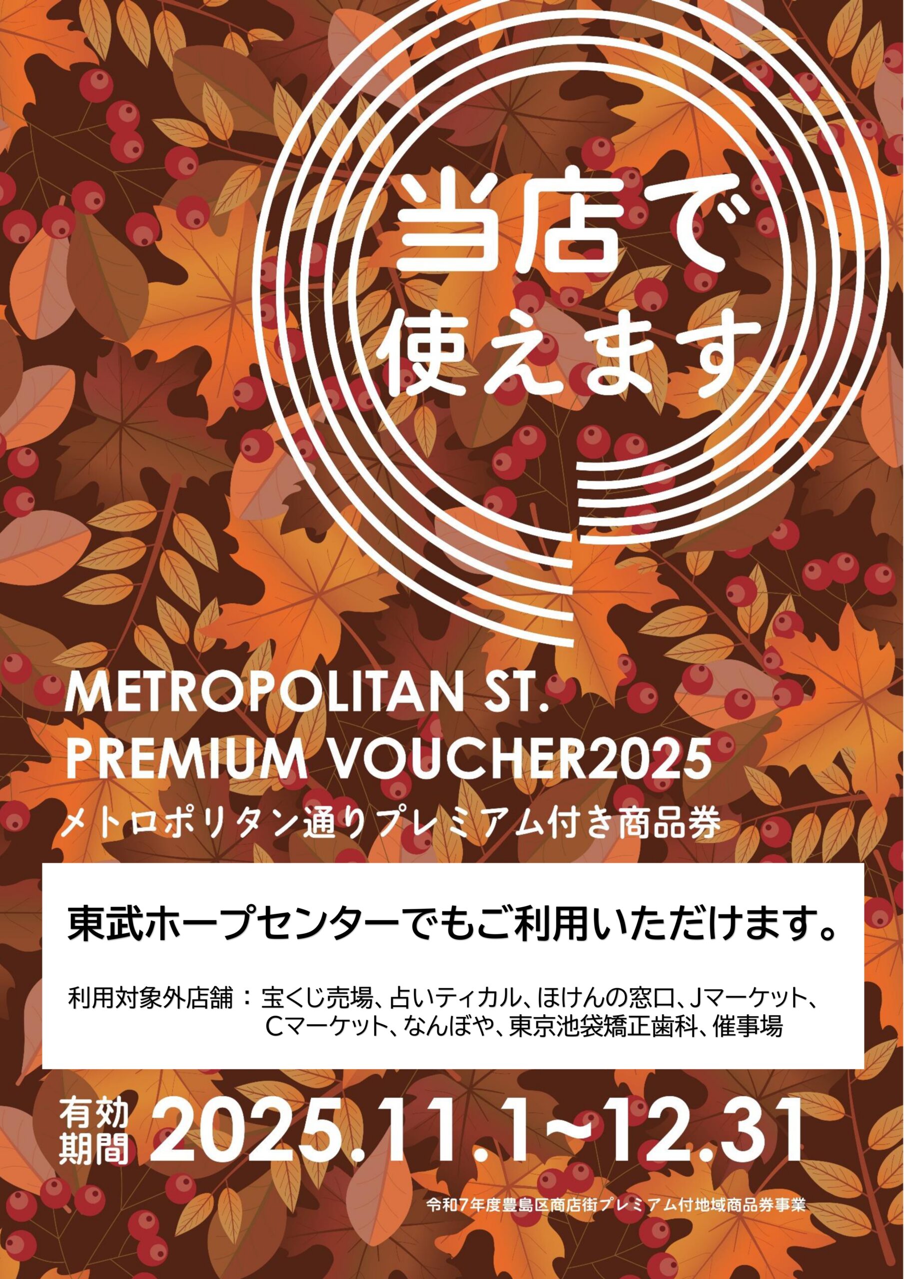 11月1日(土)より、東武ホープセンターでも「メトロポリタン通りプレミアム付き商品券」がご利用いただけます!