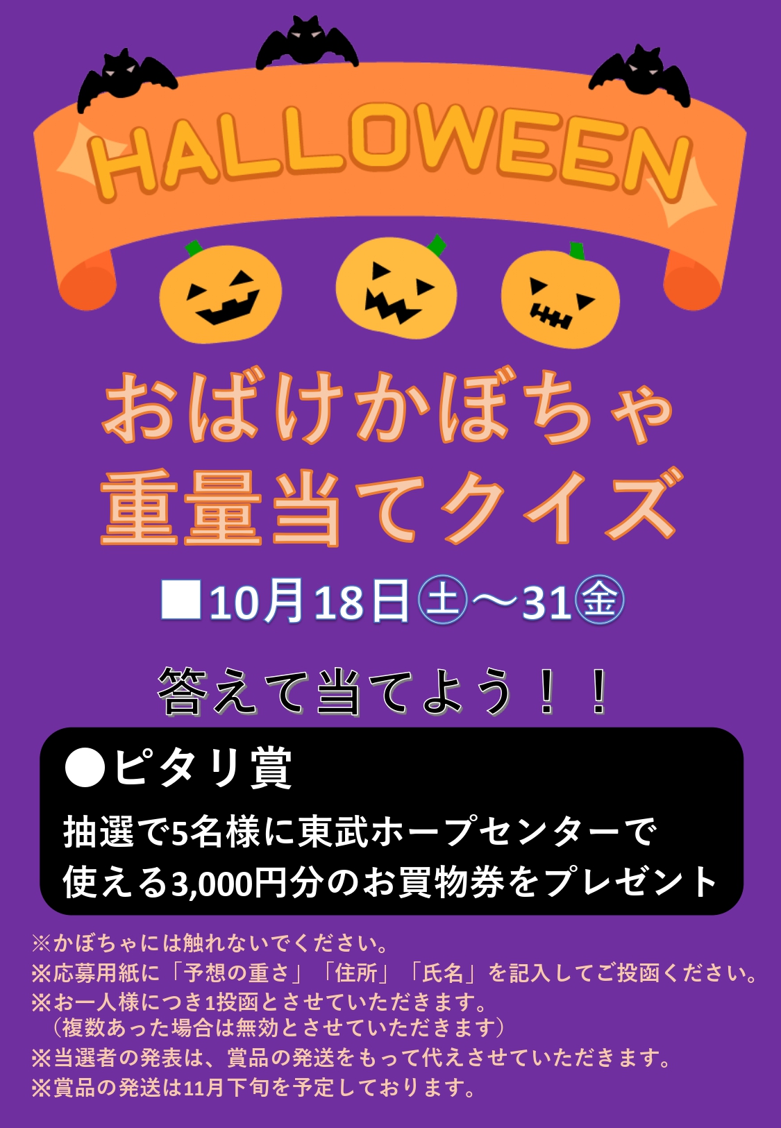 ぜひこの機会に「おばけかぼちゃ 重量当てクイズ」にチャレンジしてみてください。