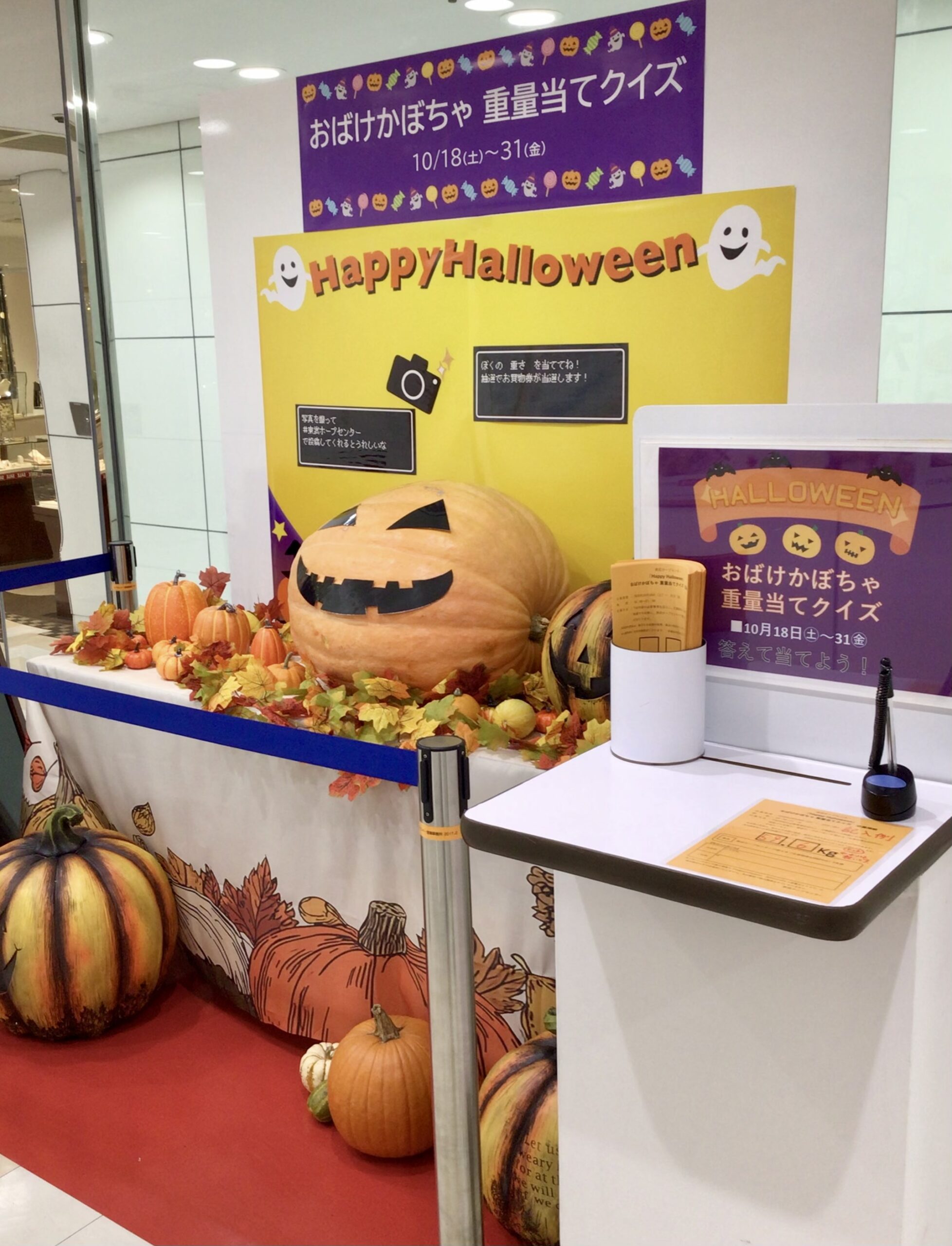 只今、ノースゾーン KEYUCA横にて「おばけかぼちゃ 重量当てクイズ」を開催中!