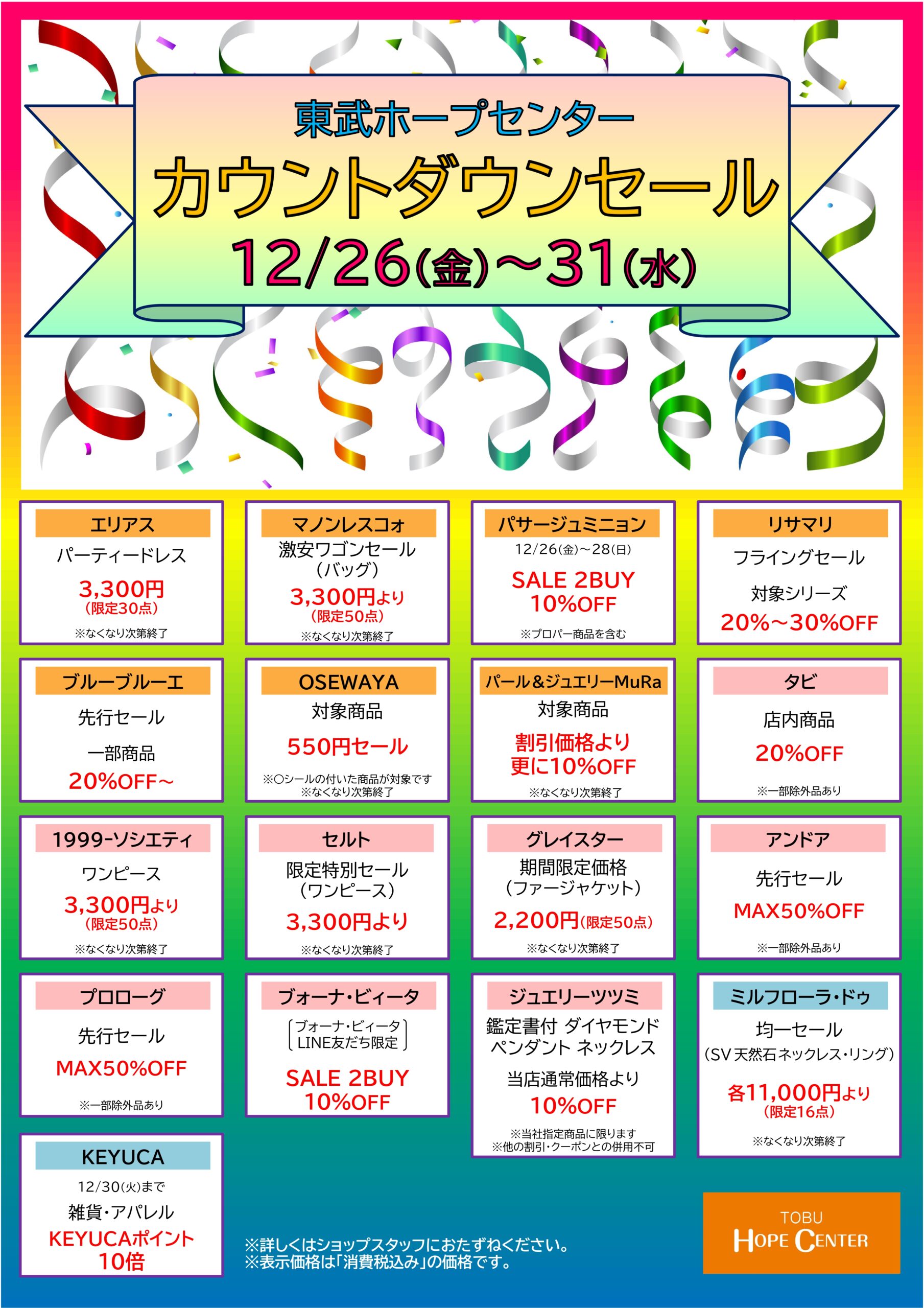 12/26(金)~31(水)まで、「カウントダウンセール」を開催!