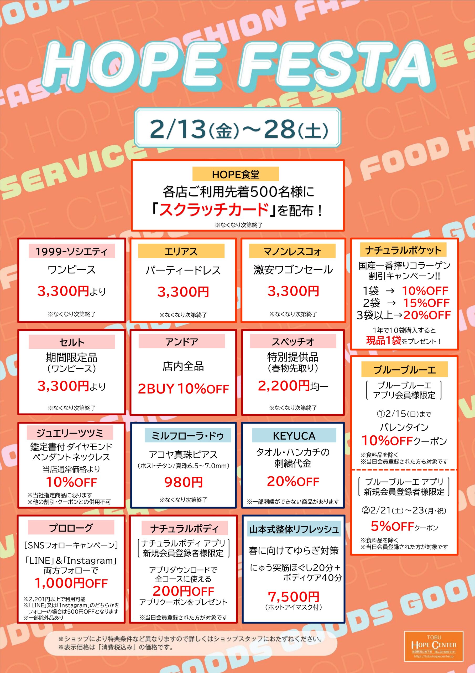 2/13(金)~28(土)まで、「HOPE FESTA」を開催!